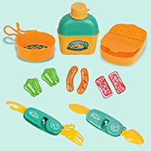 Игрушечная посуда и еда позволяют детям притвориться, что готовят ужин, и узнают о выживании на природе.