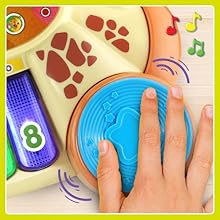 Откройте для малыша увлекательную игру: выберите песню, а затем используйте DJ Scratch Pad для наложения зажигательных звуковых эффектов и создания уникальных ремиксов с каждым вращением.