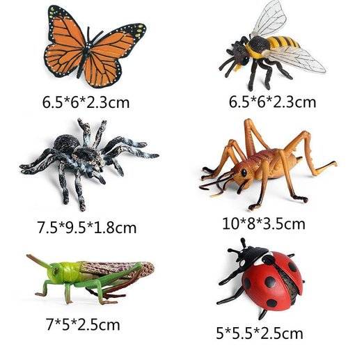 Набір складається з 6 комах: бразильський білий павук, метелик монарх, бджола, сонечко, саранча, цвіркун. Довжина від 5 см до 10 см.
