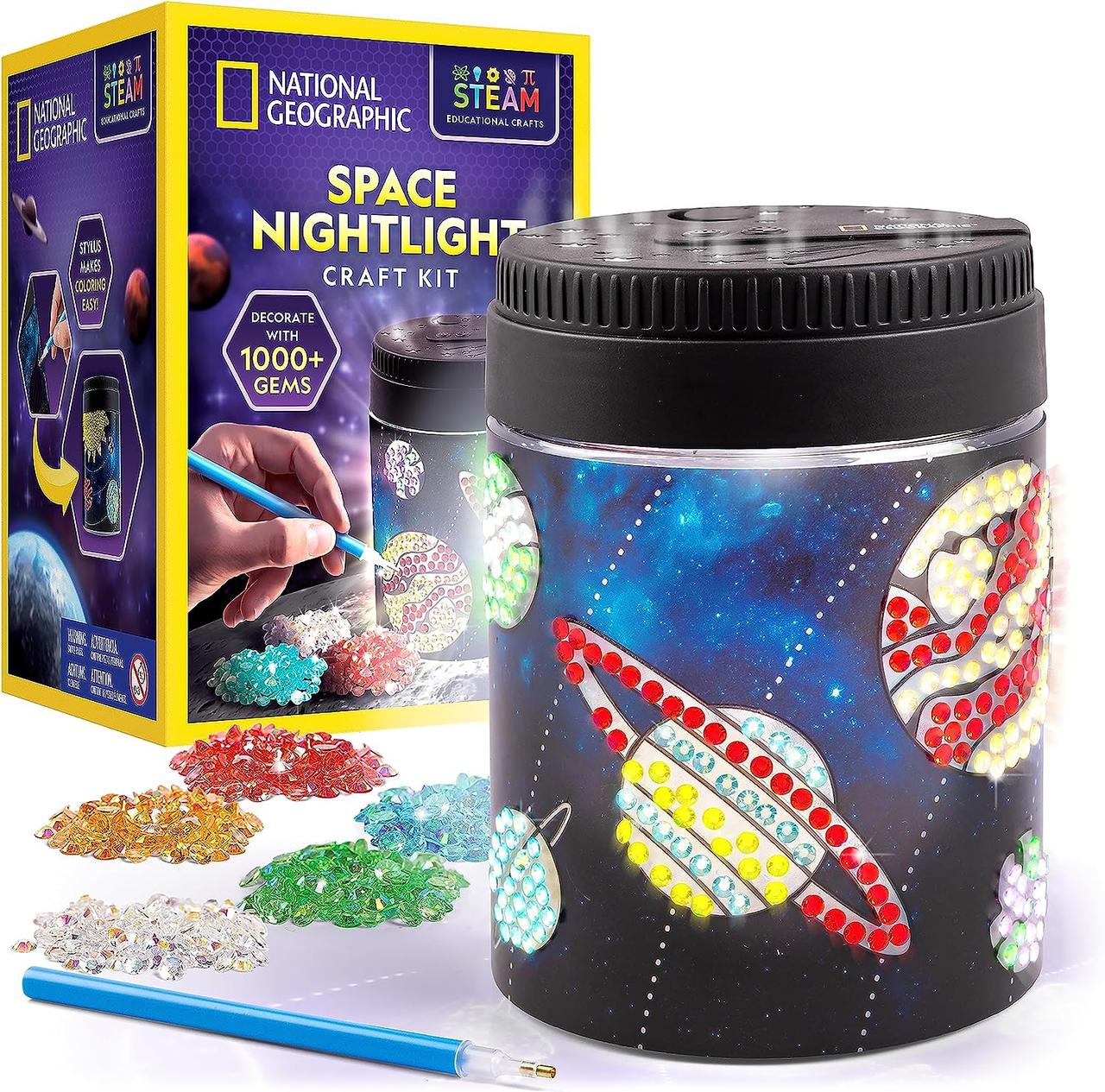 За допомогою набору для творчості «Багатокольоровий світлодіодний нічник» від National Geographic діти зможуть створити свій власний нічник на космічну тематику, використовуючи дорогоцінне каміння та аксесуари, що входять до комплекту. Завдяки семи кольорам, а також режиму зміни кольору та димеру, це ідеальний нічник з живленням від USB для будь-якої дитячої спальні!